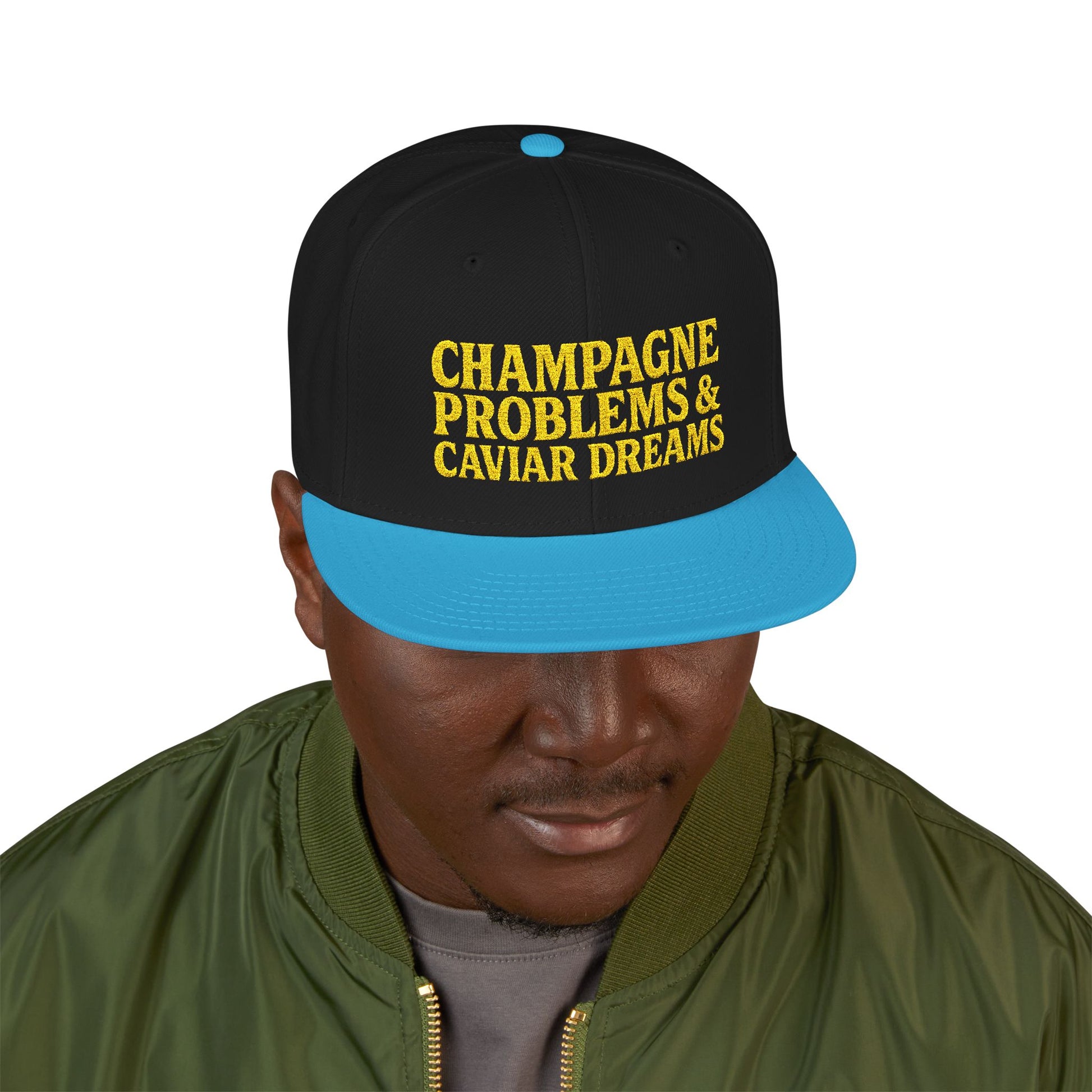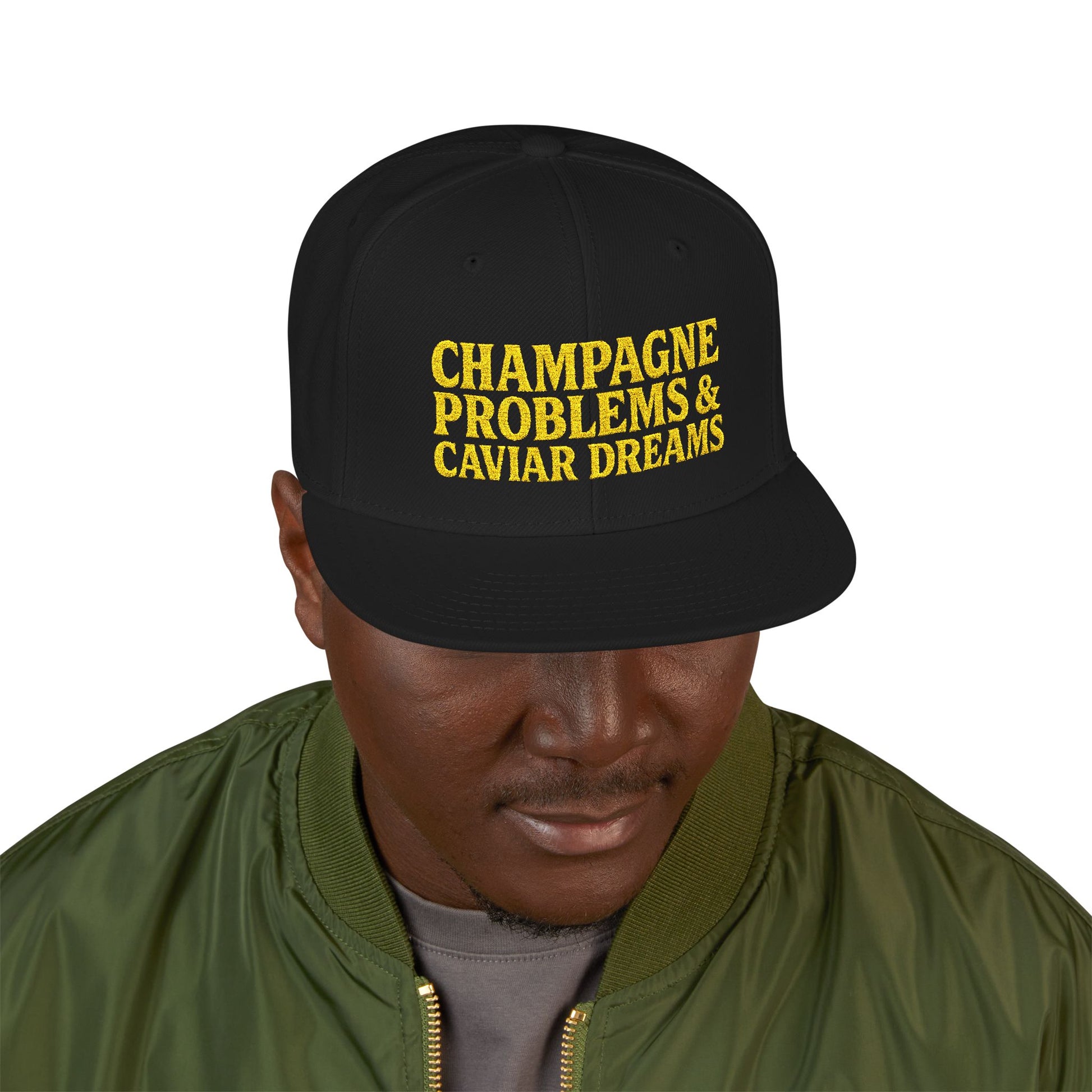 Embroidered Snapback Hat — "Champagne Problems & Caviar Dreams" Streetwear Cap