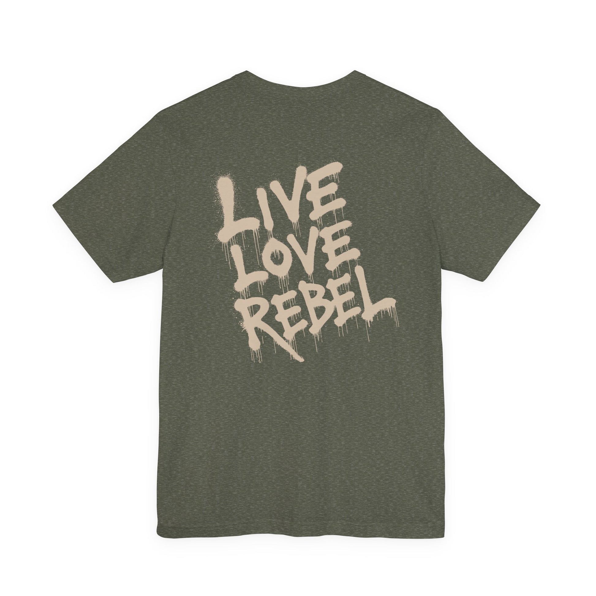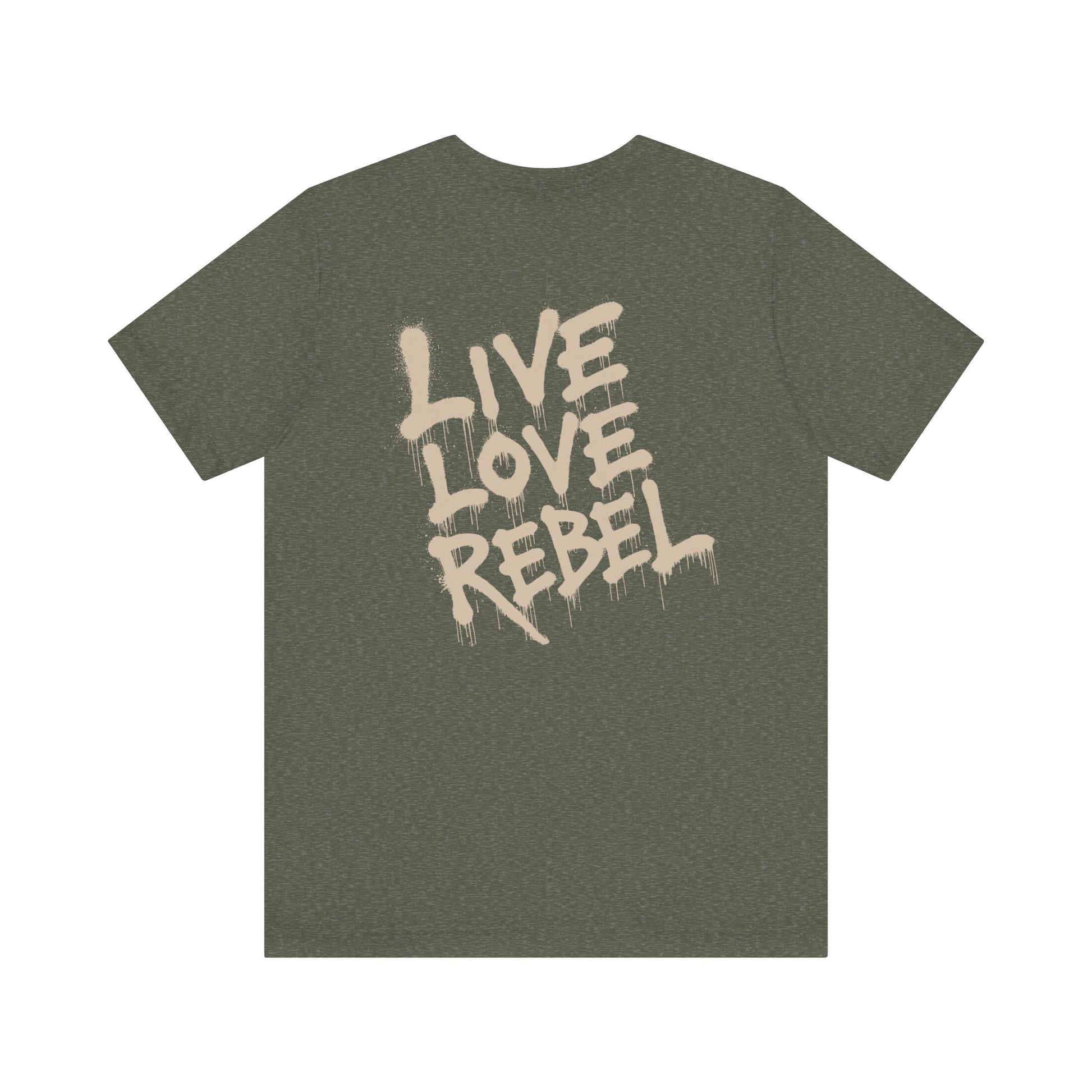 Live Love Rebel™ Unisex Jersey Tee - Bold Street Art Back Design