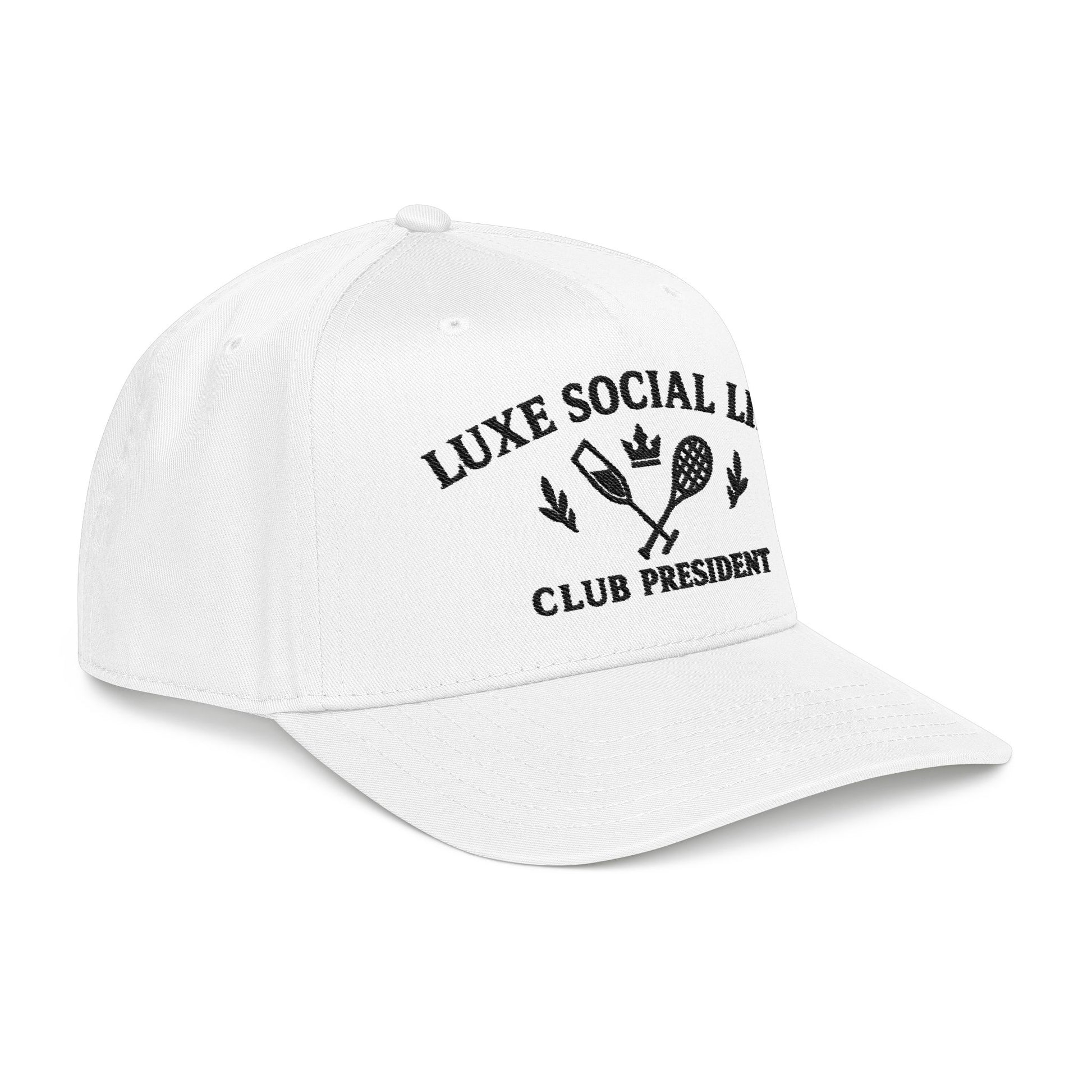 Luxe Social Life Club President Baseball Cap — Embroidered Preppy Tennis & Crown Design
