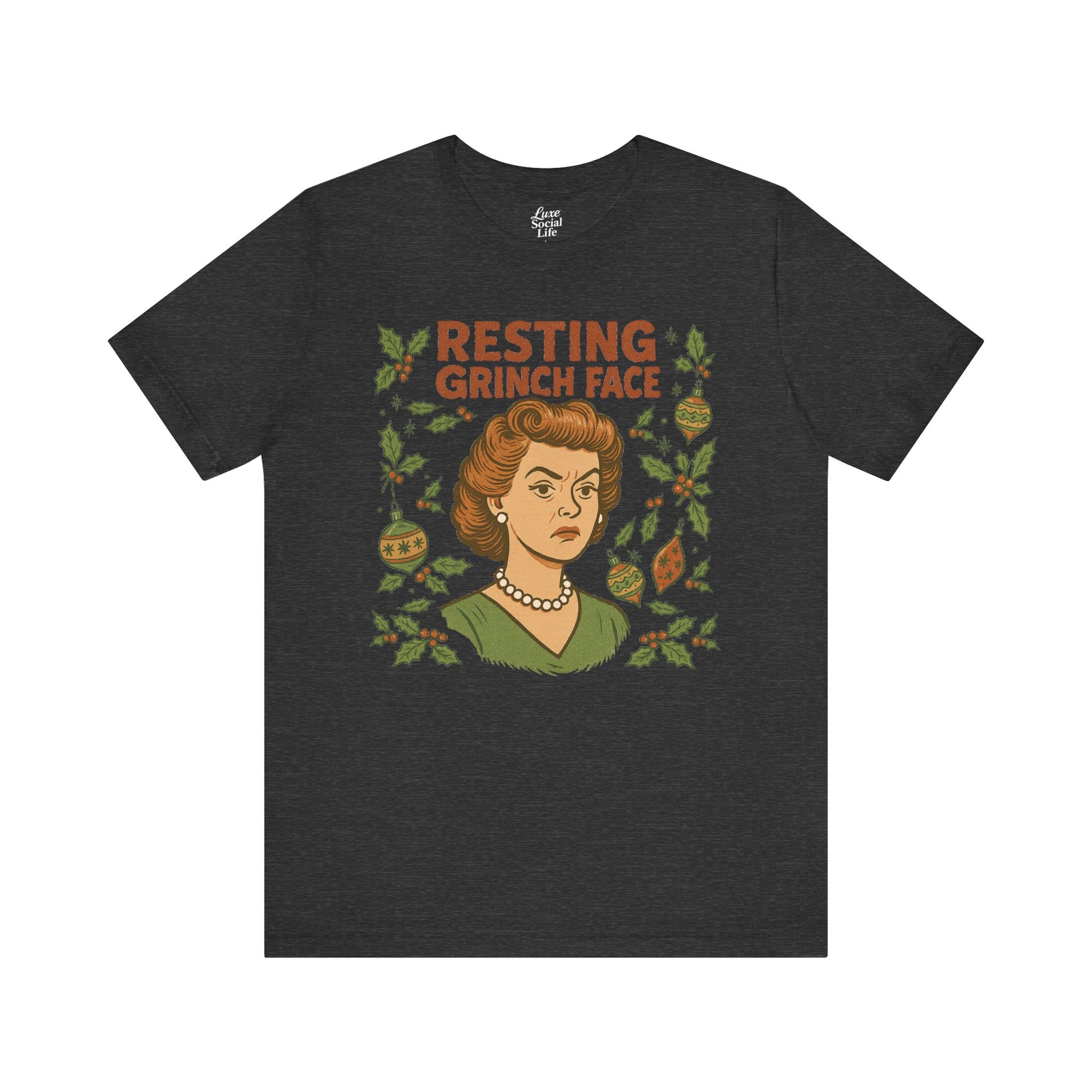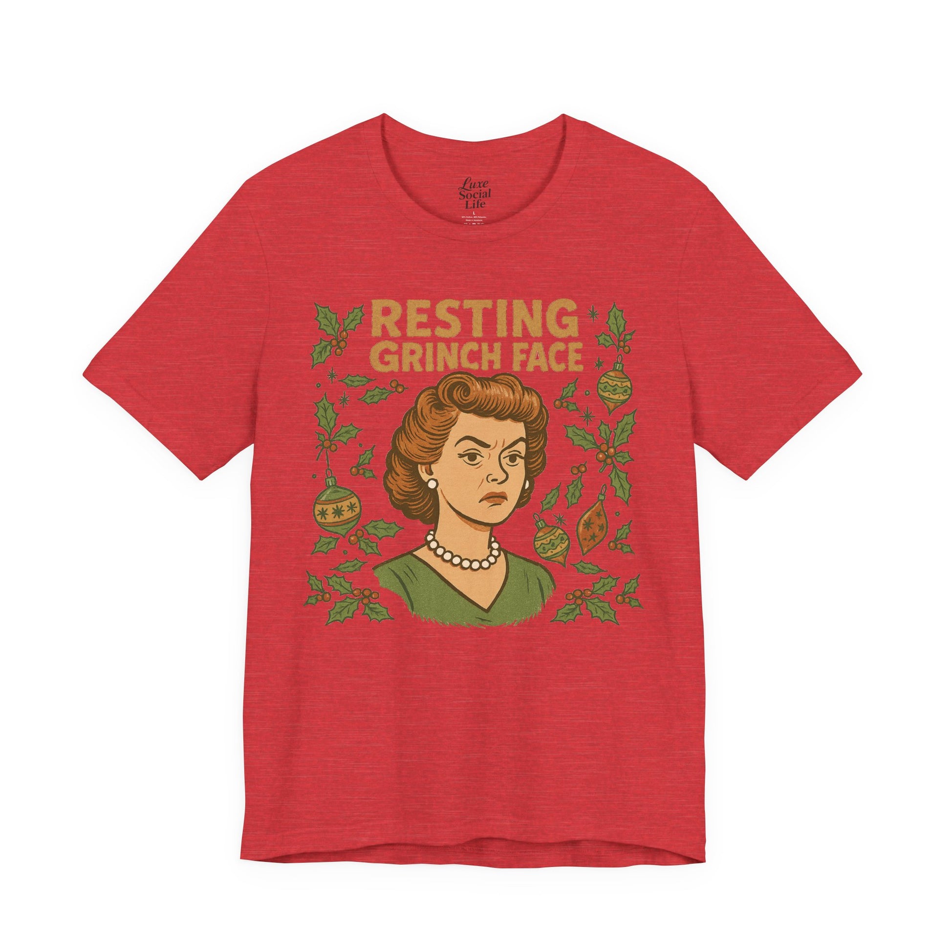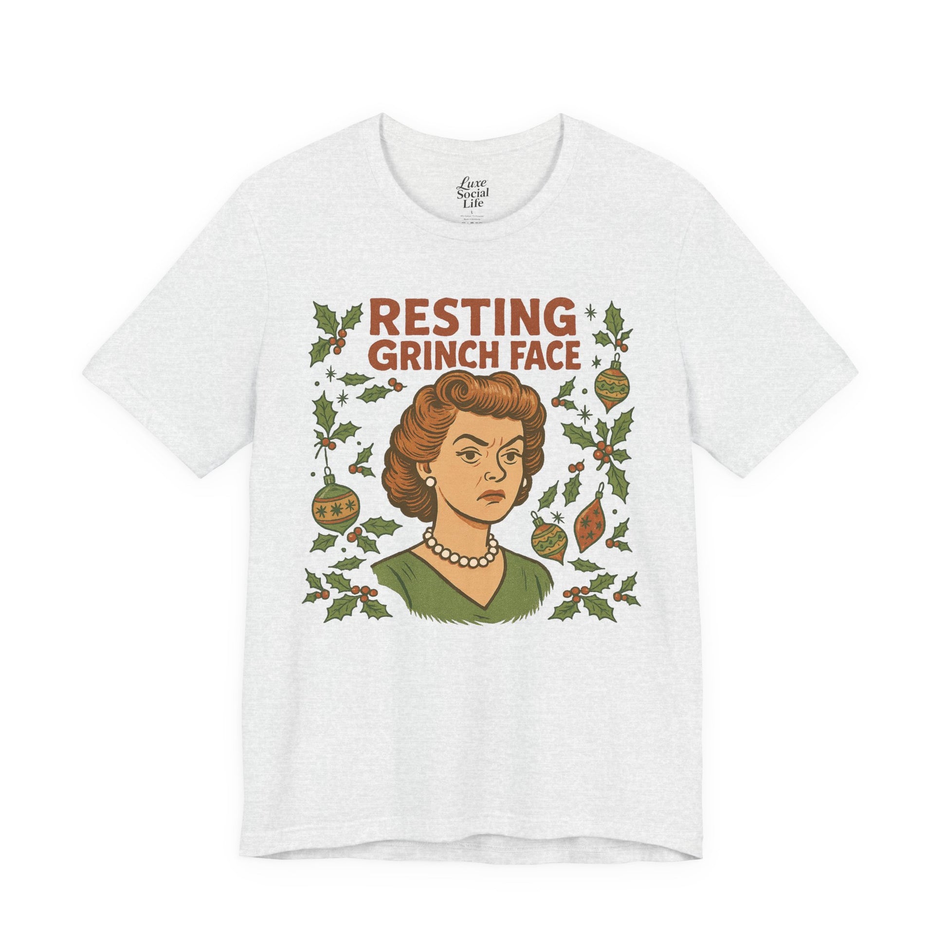 Embrace the holiday spirit with this whimsical Unisex Jersey Short Sleeve Tee that features a playful "Resting Grinch Face" design. Made from 100% Airlume combed and ring-spun cotton, this tee is lightweight and breathable, making it perfect for layering during those festive gatherings. Ideal for casual brunches or cozy nights in, it's a great conversation starter for fans of playful holiday humor. The classic crew neckline adds a touch of sophistication, making it suitable for semi-formal occasions as well. Perfect for adults who appreciate a bit of cheeky charm in their wardrobe, this shirt is a fun gift for Christmas parties, family gatherings, or as an amusing everyday wear during the holiday season. Wear it proudly while spreading cheer during the most wonderful time of the year!